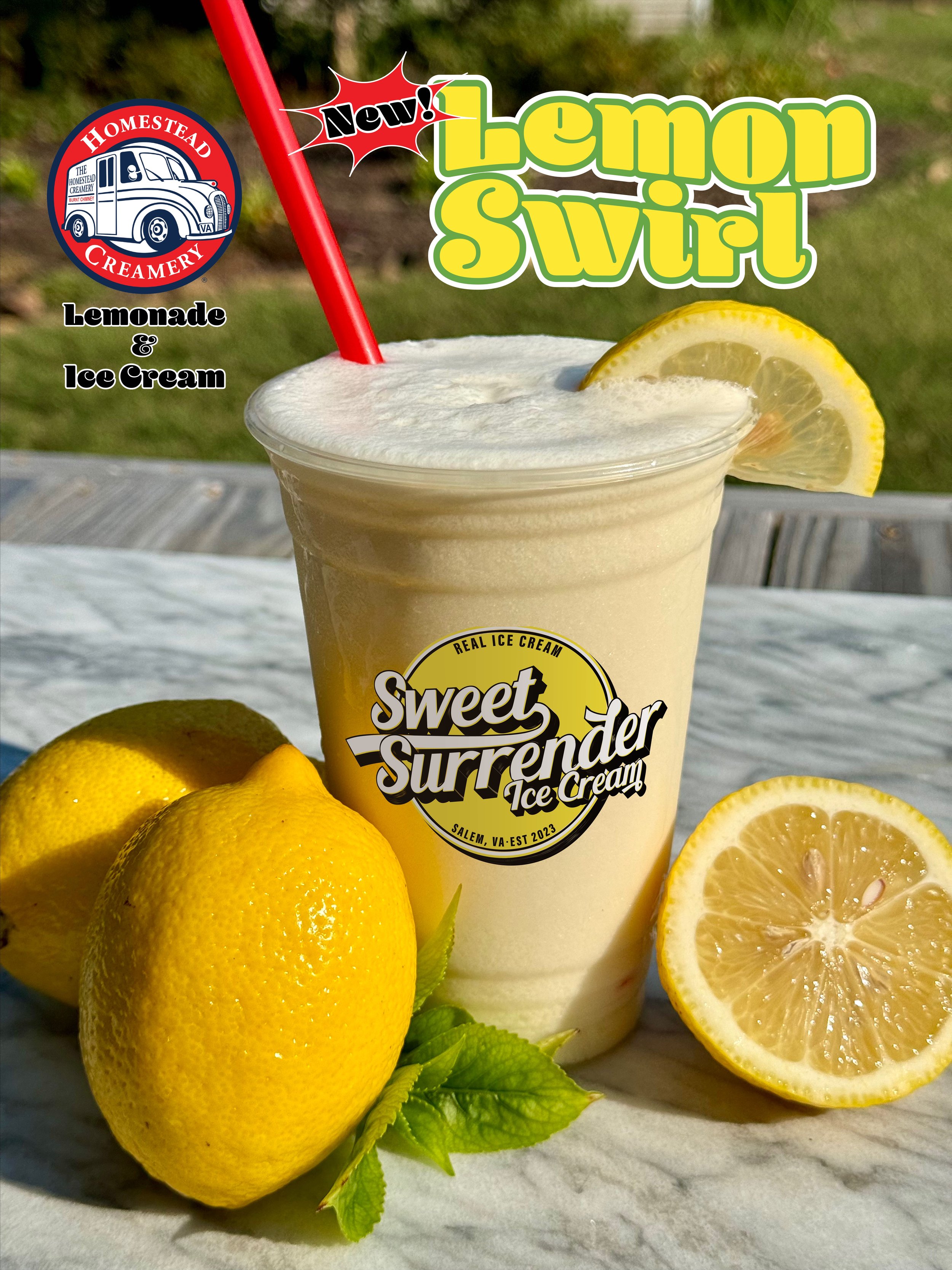 Our Lemon Swirl blends Homestead Creamery’s super‑premium vanilla ice cream with their crisp, fresh lemonade to create a drink that’s light, smooth, and incredibly refreshing. It’s the perfect cool‑down on a hot day — bright citrus balanced with creamy sweetness in every sip. Available in Original (vanilla), Strawberry, and Black Raspberry, each one brings its own twist to this summertime favorite.